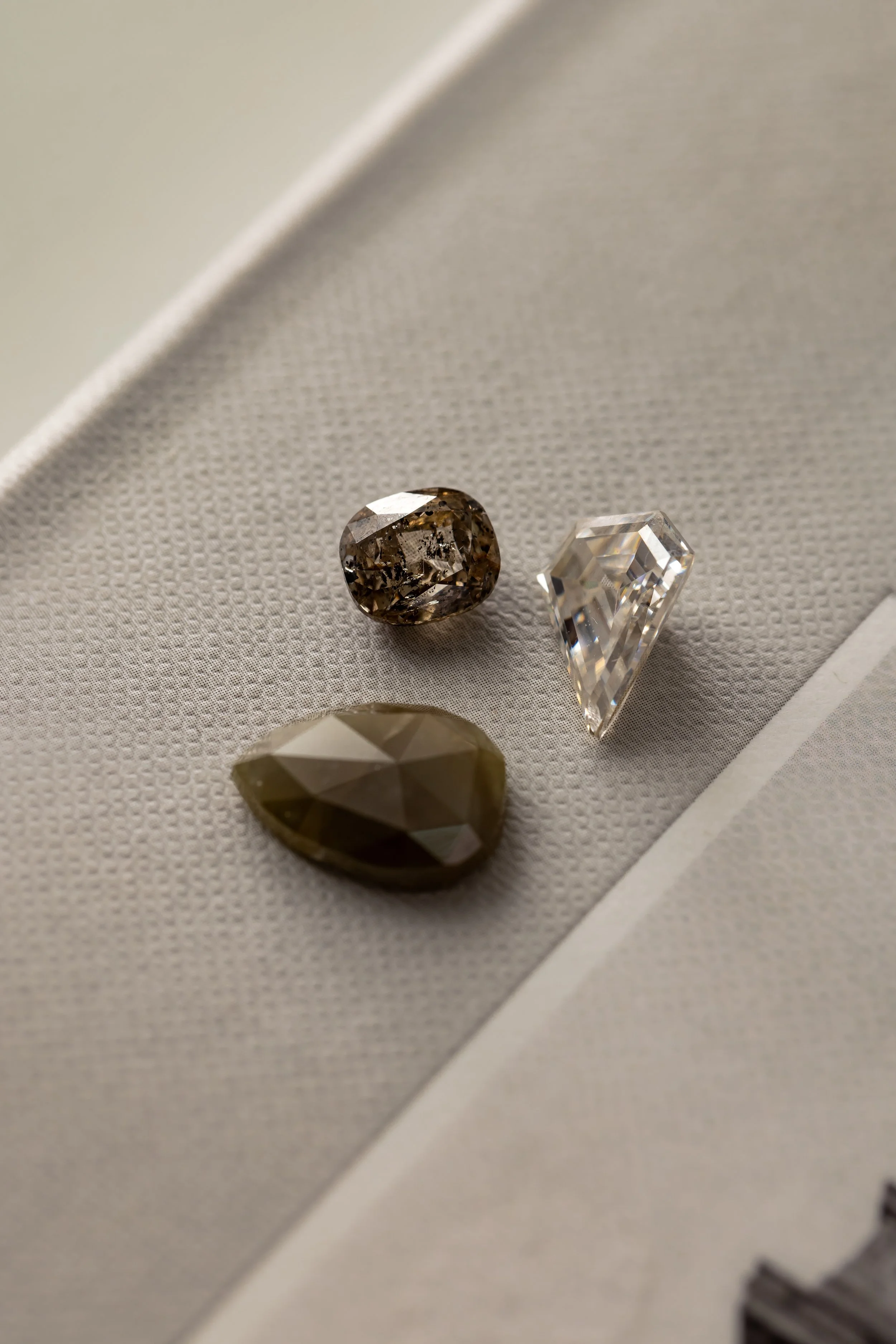 Gold ring with a unique geometric diamond and small accent diamonds